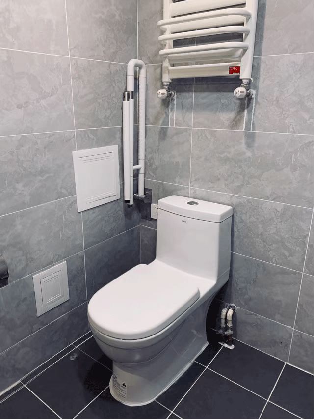 在马桶、淋浴房旁边的墙上安装防水材质的扶手,防滑安quan,更能方便父母的使用。
