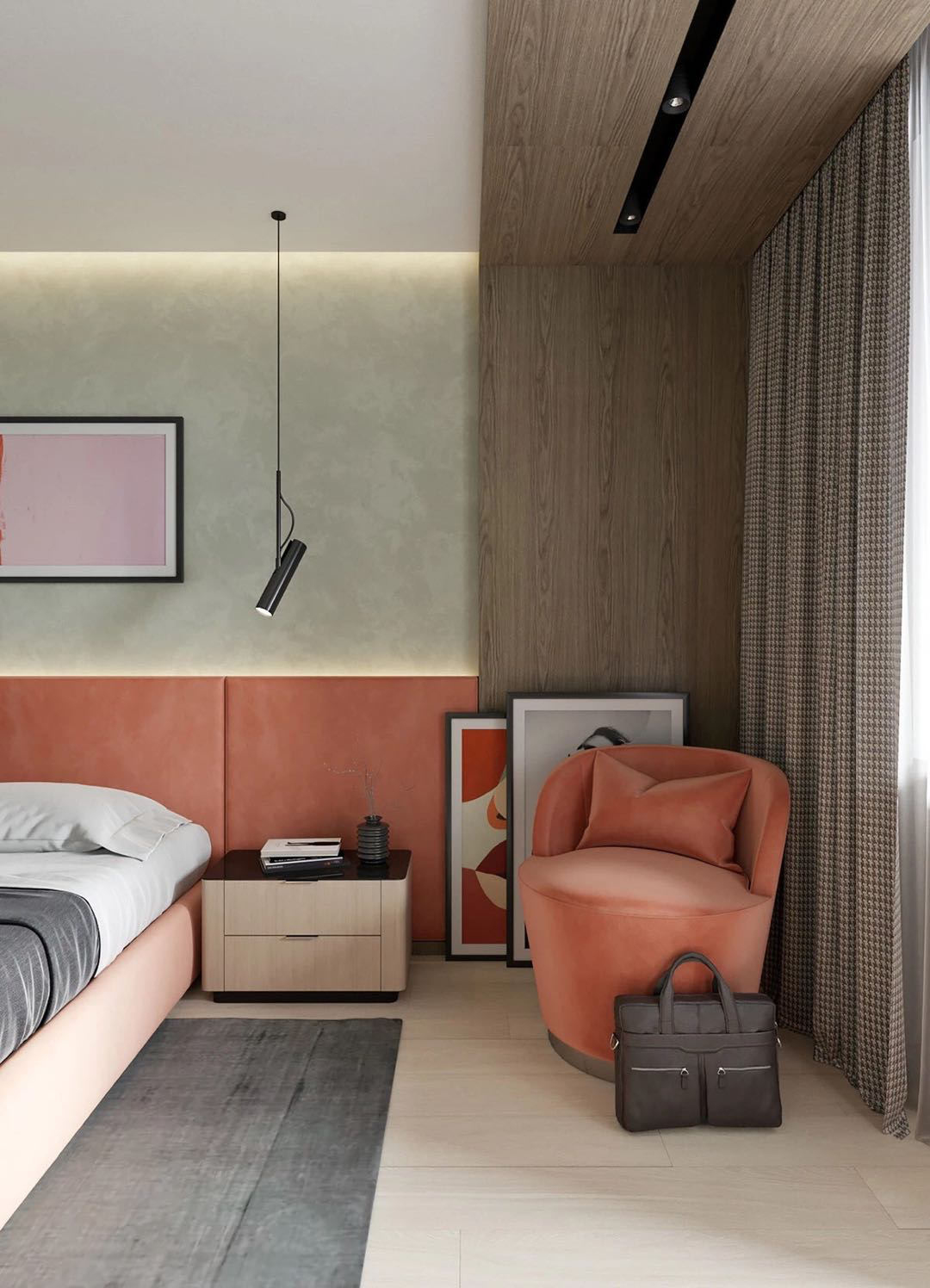 父母房不一定非要清一水的米白灰,他们也喜欢时尚带设计感的风格,具体要结合父母的喜好设计他们的房子。