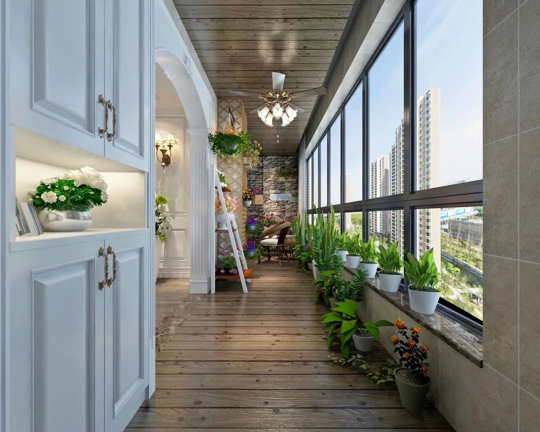 阳台的窗户用整面玻璃,避免小块玻璃带来的分裂感,使得阳台看起来狭小又压抑。可以选择推拉式或者卷帘式,保证窗户整体结构感的同时,也能满足大家的日常使用需求。